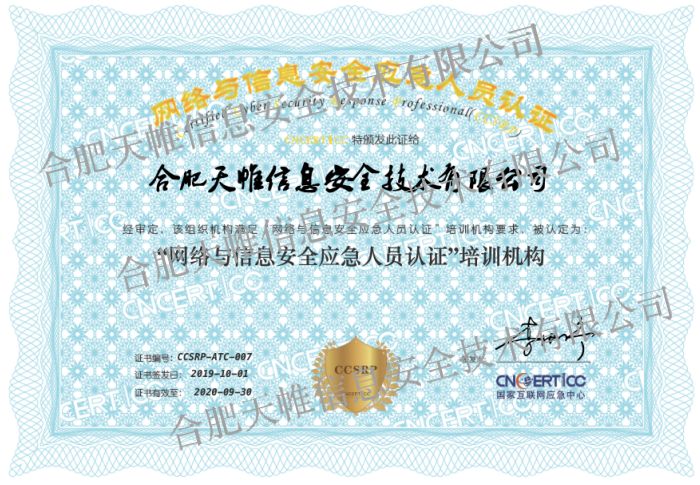 “网络与信息安全应急人员认证”(Certified Cyber Security Response Professional, CCSRP)是国家互联网应急中心(CNCERT)推出的,面向重点行业网络与信息安全从业人员的技能认证。